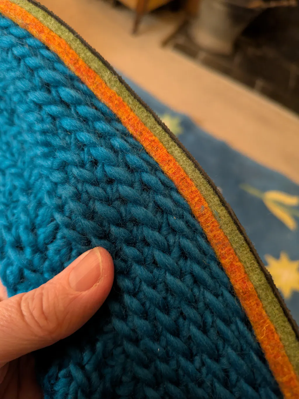 Colour - Peacock Merino with Marmalade and Green soles